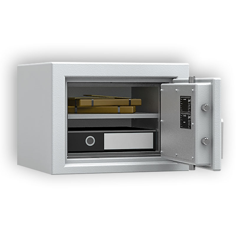 Der Müller Safe BN37 ist ein hochwertiger Stahlbüroschrank des deutschen Herstellers Müller Safe, der seit Jahren für erstklassige Wertschutzlösungen steht. Mit geprüften Sicherheits- und Feuerschutz-Zertifizierungen bietet er optimalen Schutz für Dokumente, Aktenordner und Wertsachen – ideal für das Büro oder Zuhause.