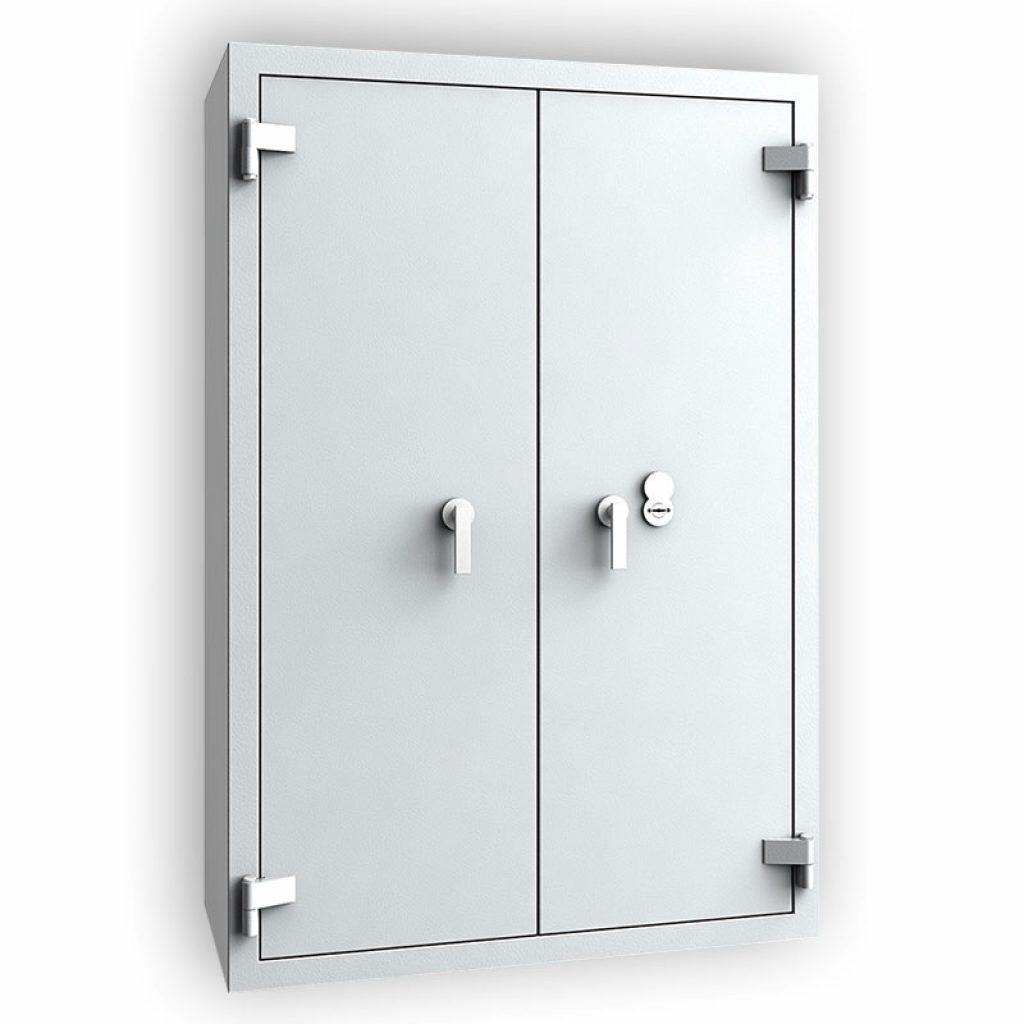 Wertschutztresor Müller Safe EN2-185 Dieser Wertschutzschrank, der in acht verschiedenen Größen verfügbar ist, überzeugt vor allem durch seine zertifizierten Sicherheitsstufe EN2, welche mit einer Feuerisolierung kombiniert wurde. Eine dreiseitige Bolzenverriegelung macht das Aufbrechen unmöglich und durch sein Gewicht kann dieser Tresor nicht abgetragen werden. In den verschiedenen Modellen finden fünf bis zu 52 Aktenordner Platz [...]